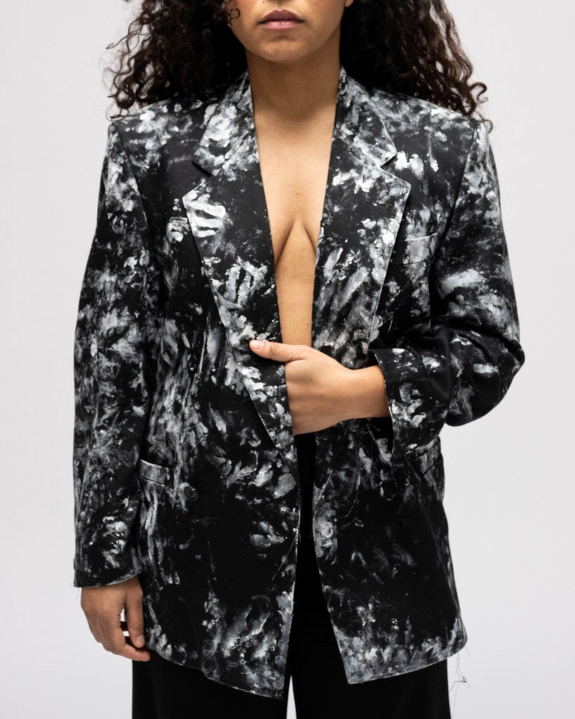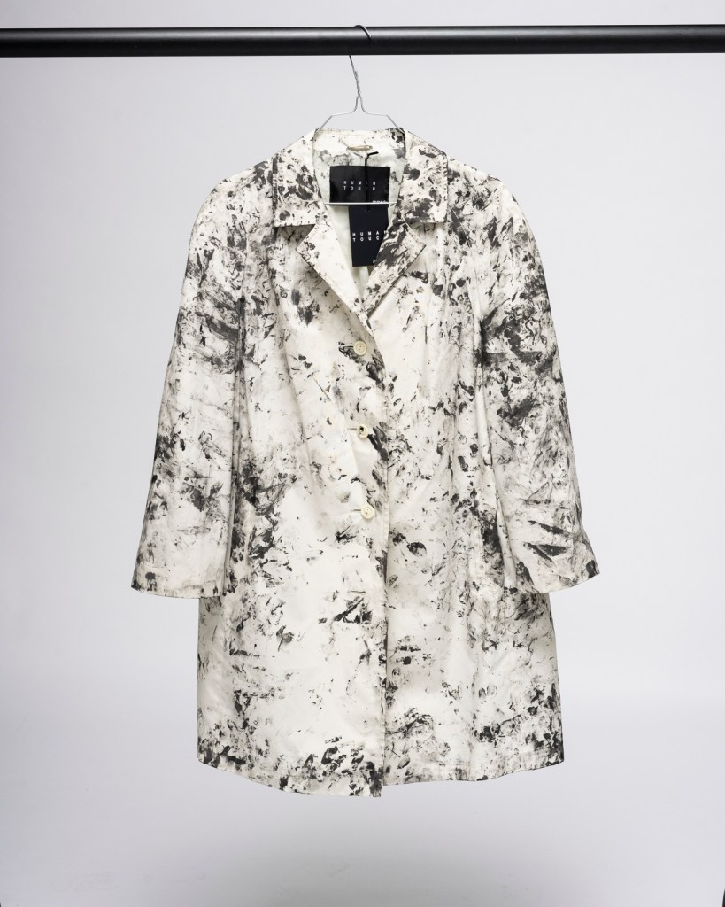 With this concept at its core, HUMAN TOUCH visualizes the human labor inherent to the production of clothing. Seger and her business partner, Christina Albrecht, up-cycle everyday, quotidian clothing items, like workwear slacks and T-shirts, with their fingers covered in ink. In doing so, HUMAN TOUCH makes visible the invisible human hand behind our clothes and the fashion industry at large.