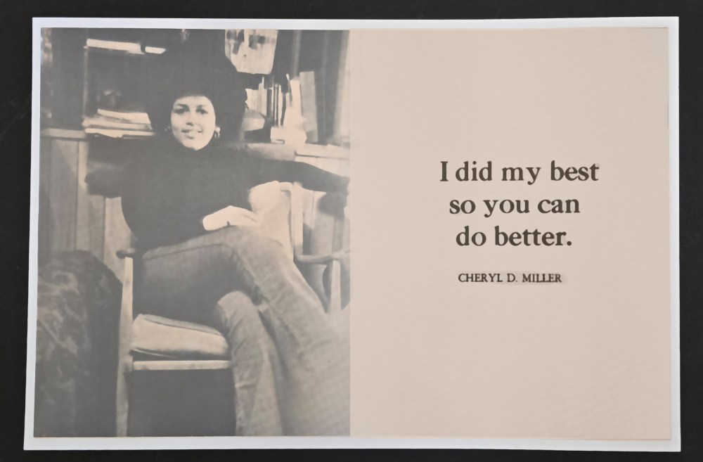 Advocacy and activism are just part of Cheryl Miller’s DNA. Growing up in Washington D.C. (her father, what she called a “highbrow negro politician”), Miller’s upbringing was somewhat insulated amidst the backdrop of Black nationalism, “I’m Black and I’m Proud,” and Nina Simone, her father scooting out the back door to attend the March on Washington. She was busy “dancing and graduating” when MLK was assassinated. “I was a kid,” Miller said, “I didn’t realize I was deep in a big part of history.”