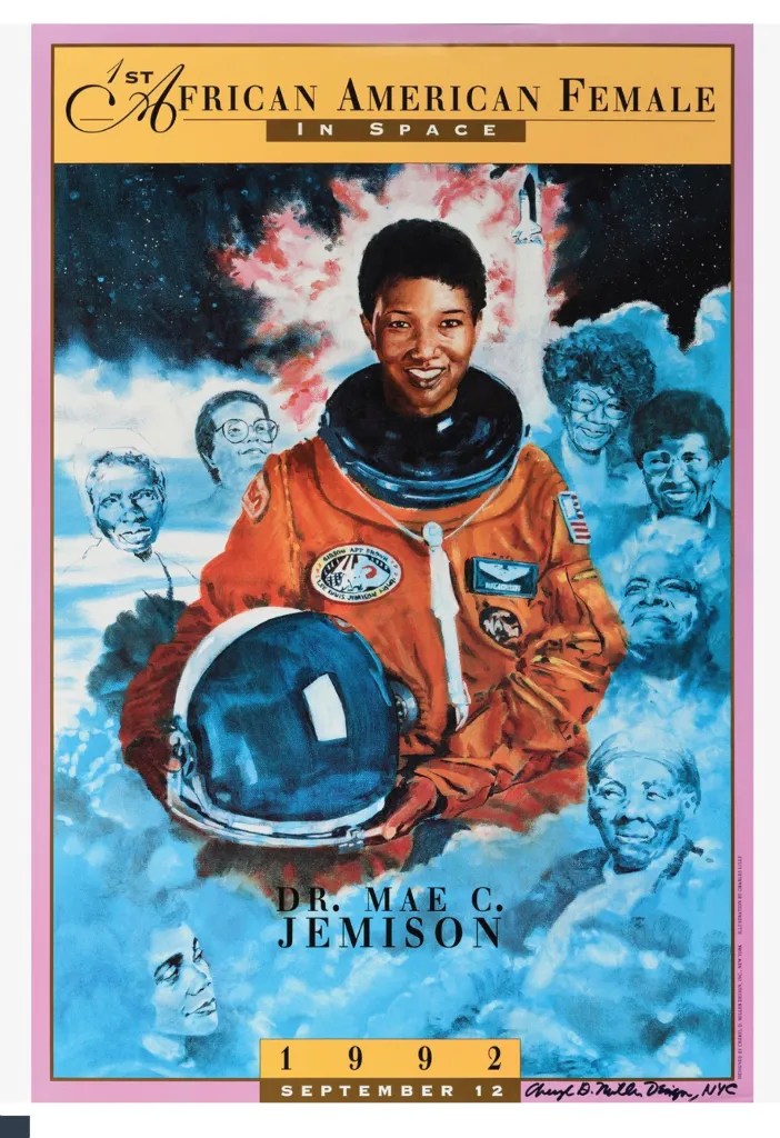 Miller at the helm of her successful design studio, Cheryl D. Miller Design (1984-2000); In 1992, Miller was commissioned by NASA to create the poster for Dr. Mae Jeminson, America’s first African American woman astronaut.