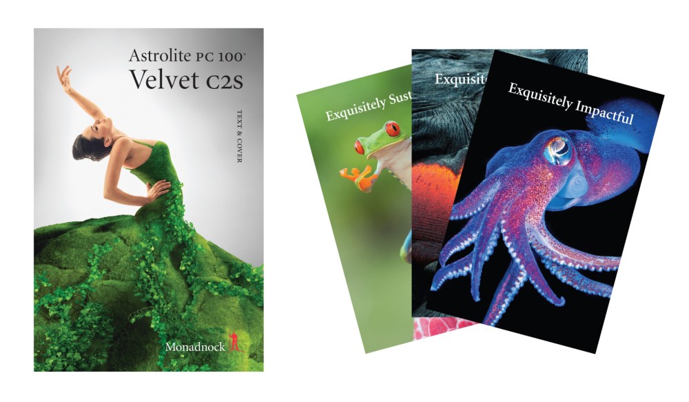 “Our new catalog cover delivers that ‘wow’ factor with Monadnock’s Astrolite PC 100 Velvet paper,” Grossman explained. Astrolite PC 100 Velvet is part of the company’s line of fine printing papers, coated on both sides and made with 100% post-consumer waste recycled fiber. It is the only premium-coated 100% recycled sheet made in the U.S.