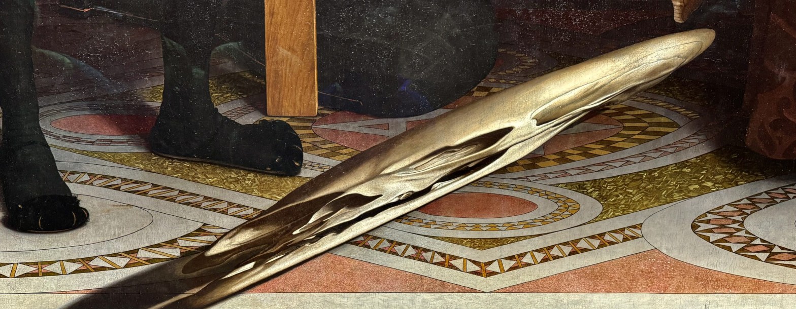 During a recent visit to London, I visited my “old friends,” The Ambassadors, at the National Gallery of Art. It’s a 16th-century masterpiece of Northern Renaissance painting by Hans Holbein the Younger. Part of its charm is its scale—measuring nearly seven feet square. Standing before it, you feel part of the meticulously detailed scene of French noblemen amidst a dazzling collection of objects celebrating science and the humanities. There are measuring instruments, geographic models, books, and an exquisite lute with a broken string painted so finely that it appears like a curl of human hair. Arguably, what makes this painting legendary is the peculiar anamorphic rendering of a human skull in the foreground. Studied by artists and scholars for hundreds of years, it still shocks visitors when they see it for the first (or tenth) time.