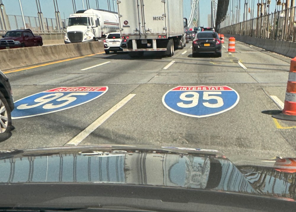 The principles of anamorphic design are put to good use in commonplace applications. For example, this technique is often used for traffic information on a roadway, whether an interstate marker or a crosswalk.