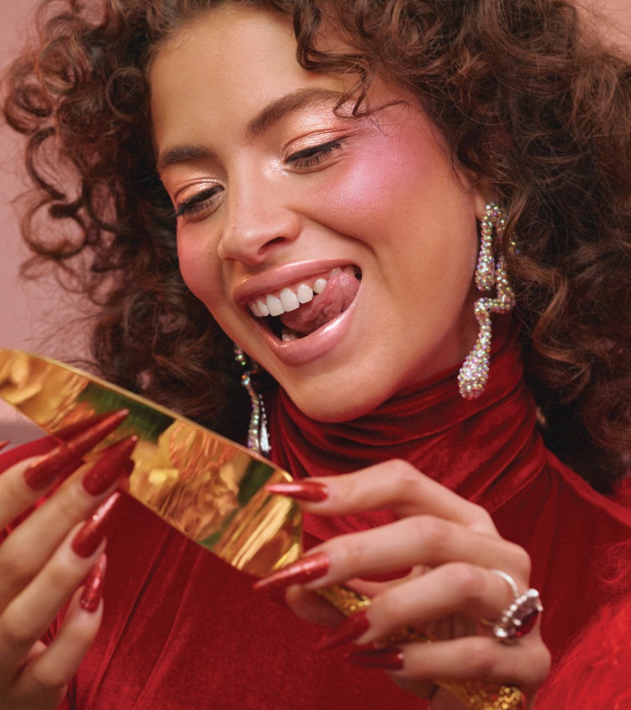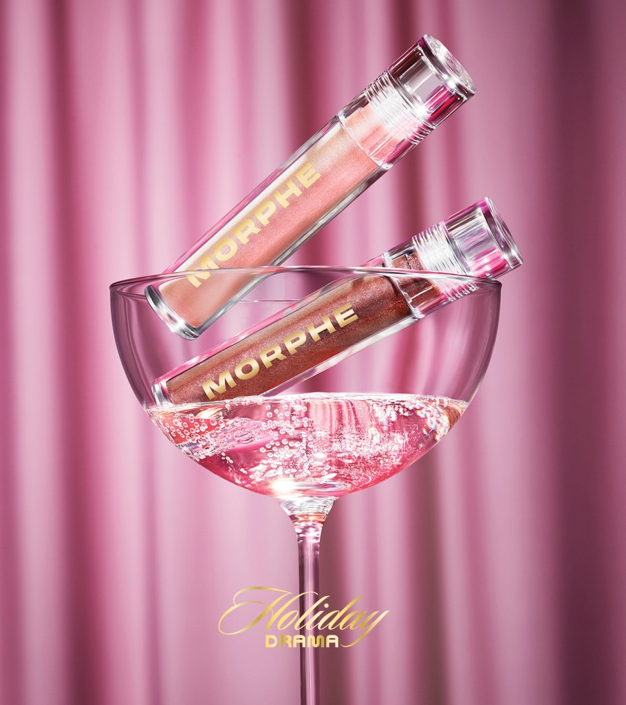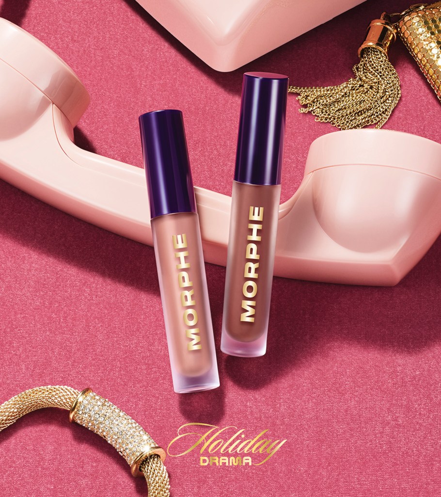 Centered around a festive family gathering, the campaign features a little sister, big sister, and Mom, serving up eye rolls, side-eye glances, and sibling rivalry with full drama. Set against the backdrop of a holiday dinner table, the characters are dressed to the nines in head-to-toe glamour, with a focus on Morphe’s stunning holiday drama looks.