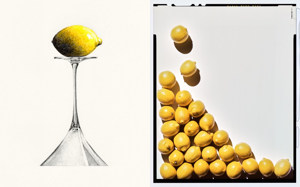 My idea was to use the actual 4×5 film’s edge as a creative tool that would contain the lemons. Once the image was shot I sent the film off to The Icon Film Lab to process and create a drum scan.