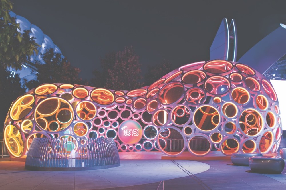 Left: The team in Shanghai designed a spirited, multi-sensory experience called BBLz. It’s a singular summer immersion featuring an interactive pavilion, vibrant colors, and engaging events. Right: The team in Shanghai designed a spirited, multi-sensory experience called BBLz. It’s a singular summer immersion featuring an interactive pavilion, vibrant colors, and engaging events.