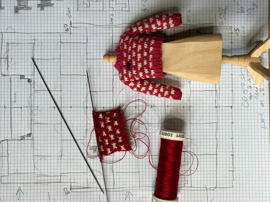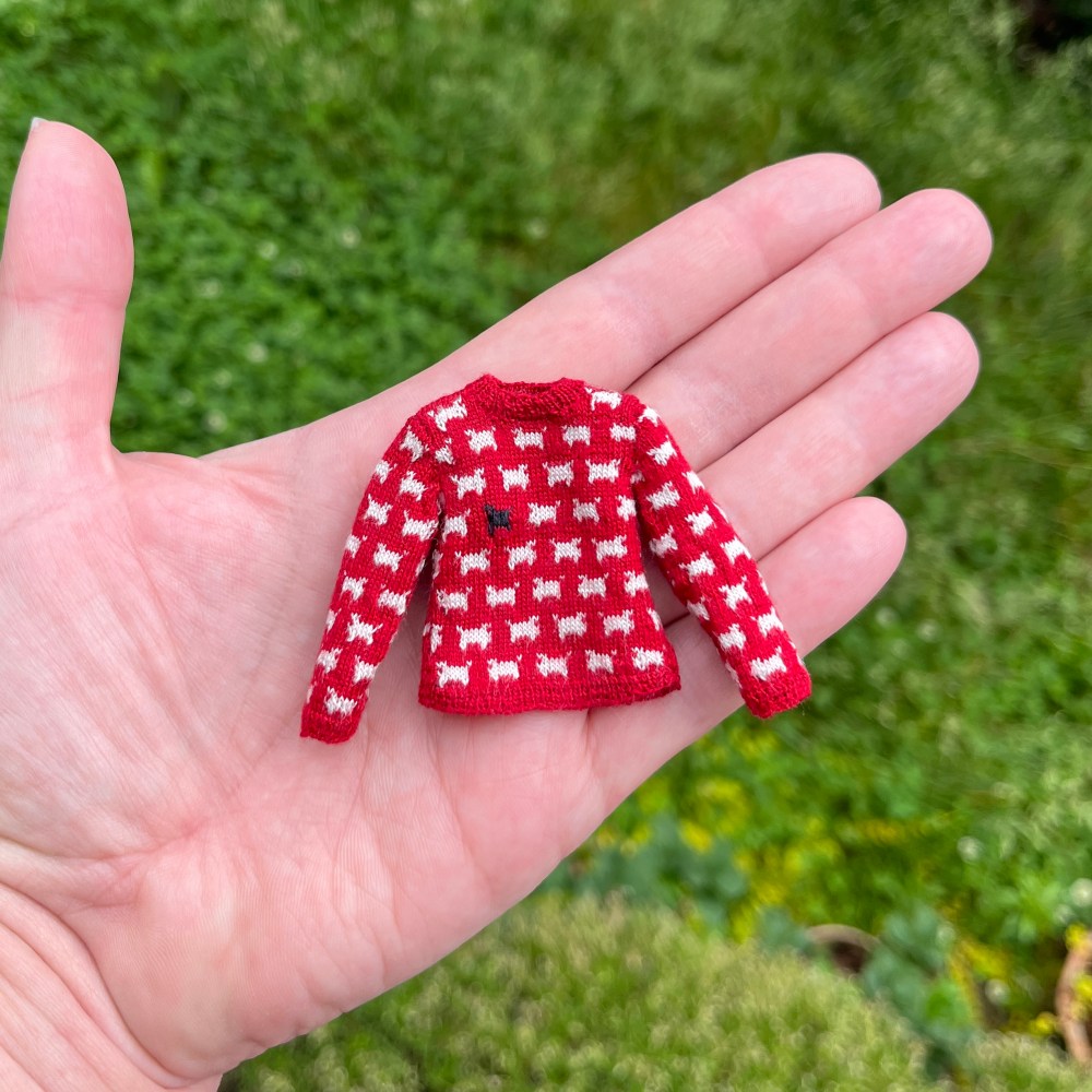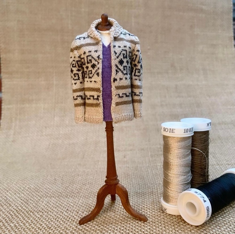 I’d say that overall, my biggest goal is to make the knitwear in miniature that I myself would most like to wear if I were 5.5 inches tall— comfortable, well-fitted, and fully functional in spite of the small size. This is the same standard I apply to my miniatures, and if I were magically shrunk down, the bow-knot sweater is the first sweater I would reach for.