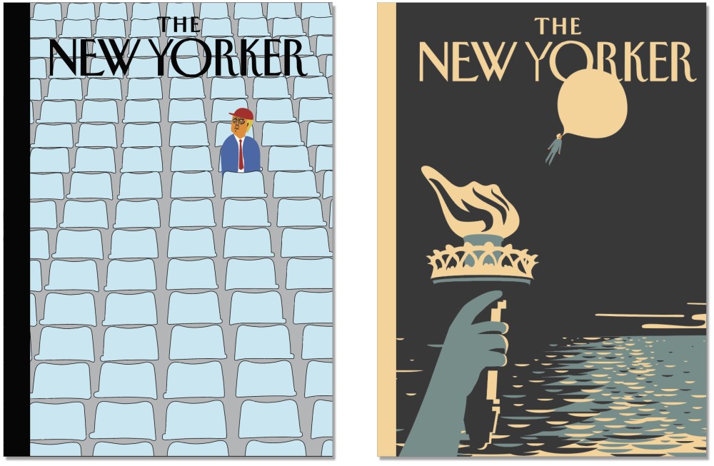 I find it difficult to come up with a good idea that also works well as a composition. And I’m up against some of the most talented artists around. A New Yorker cover is one of the most coveted gigs around and everybody wants to have a go. Some days I feel inspired to keep going. Some days I feel tired and inadequate to the task.