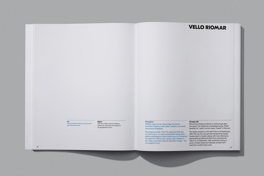 Her concept: To interview as many survivors as possible who were children then from her mother’s generation, photograph them now as older people along with one object that they saved from the journey. Her work has recently been compiled into the limited edition book Children of the 1944 Estonian Mass Flight, which Maria also handsomely designed and skillfully self-published. Each section begins with a compelling personal recollection on the first of two spreads (in English and Estonian) and a portrait on one page and the object on the opposite.