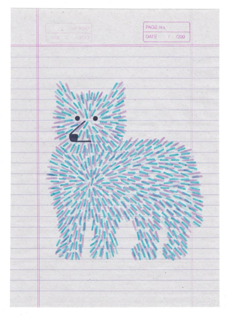 Sometimes I discover a new dog and draw it immediately. Other times, I invent a shape that will lead me to an imaginary dog. Today, I don’t necessarily know which dogs are real or imaginary among all of those I have drawn.