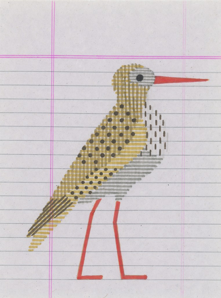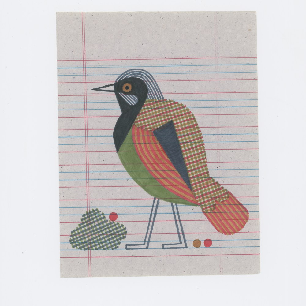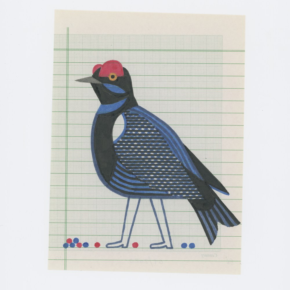 The idea of making a series of bird drawings came through color: it was about experimenting with the infinite compositions and superpositions of colored lines. Since my childhood, I have always drawn birds: two lines for the beak, two lines for the legs, and in the middle of the body, then the tail and wings can be placed in a certain disorder.
